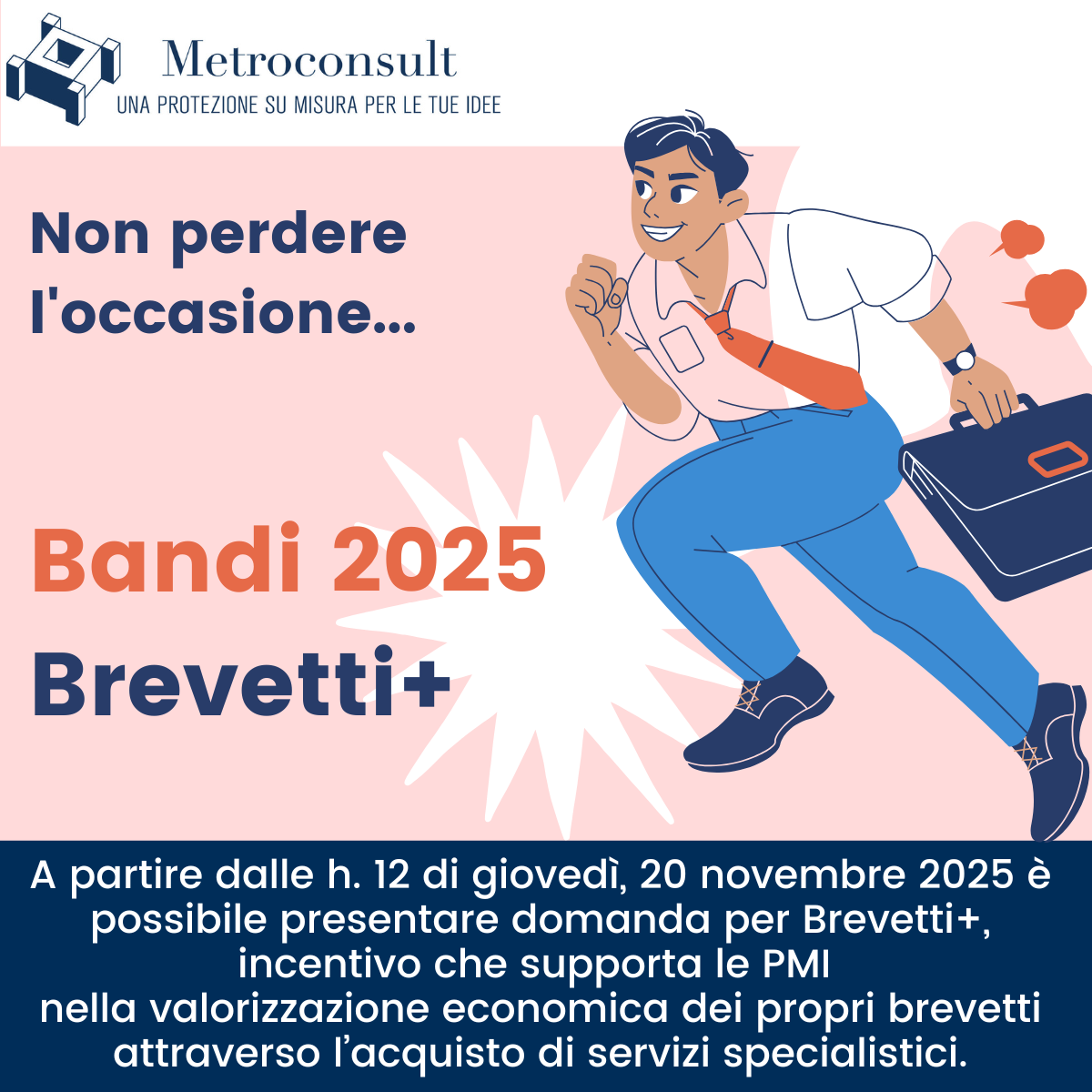 Innovazione e creatività sono componenti essenziali per aumentare la competitività ed il valore della tua impresa; la missione di Metroconsult è trasformare questi valori intangibili in robusti asset aziendali, quali brevetti, modelli di utilità, marchi o design, che permettano alla tua azienda di competere con successo in un mercato globale.