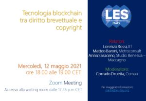Matteo Baroni, Consulente in Proprietà Industriale presso Metroconsult, parteciperà al webinar organizzato da LES Italia sul tema “Tecnologia blockchain tra diritto brevettuale e copyright”.