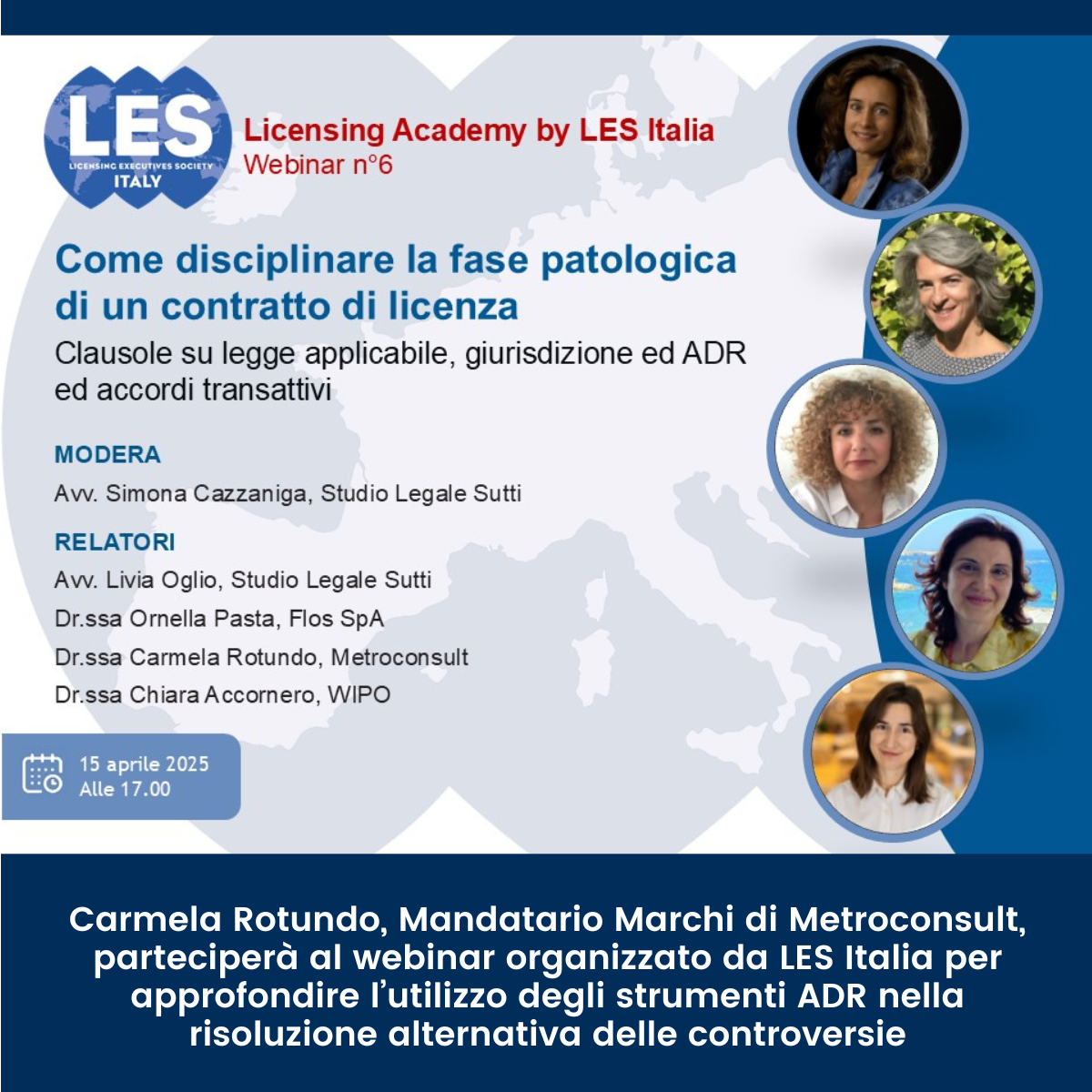 Torino/Online, 1 luglio 2025 h. 14:00 – 18:00 CEST Fondazione Links Corso Castelfidardo 30/A, Torino Consulta il programma (pdf) Siamo lieti di annunciare la partecipazione di Metroconsult al convegno “Contraffazione nei prodotti complessi: le nuove sfide dell’era dell’AI”, organizzato da LES Italia in collaborazione con Fondazione LINKS, in programma martedì 1° luglio 2025. L’evento, di [...]