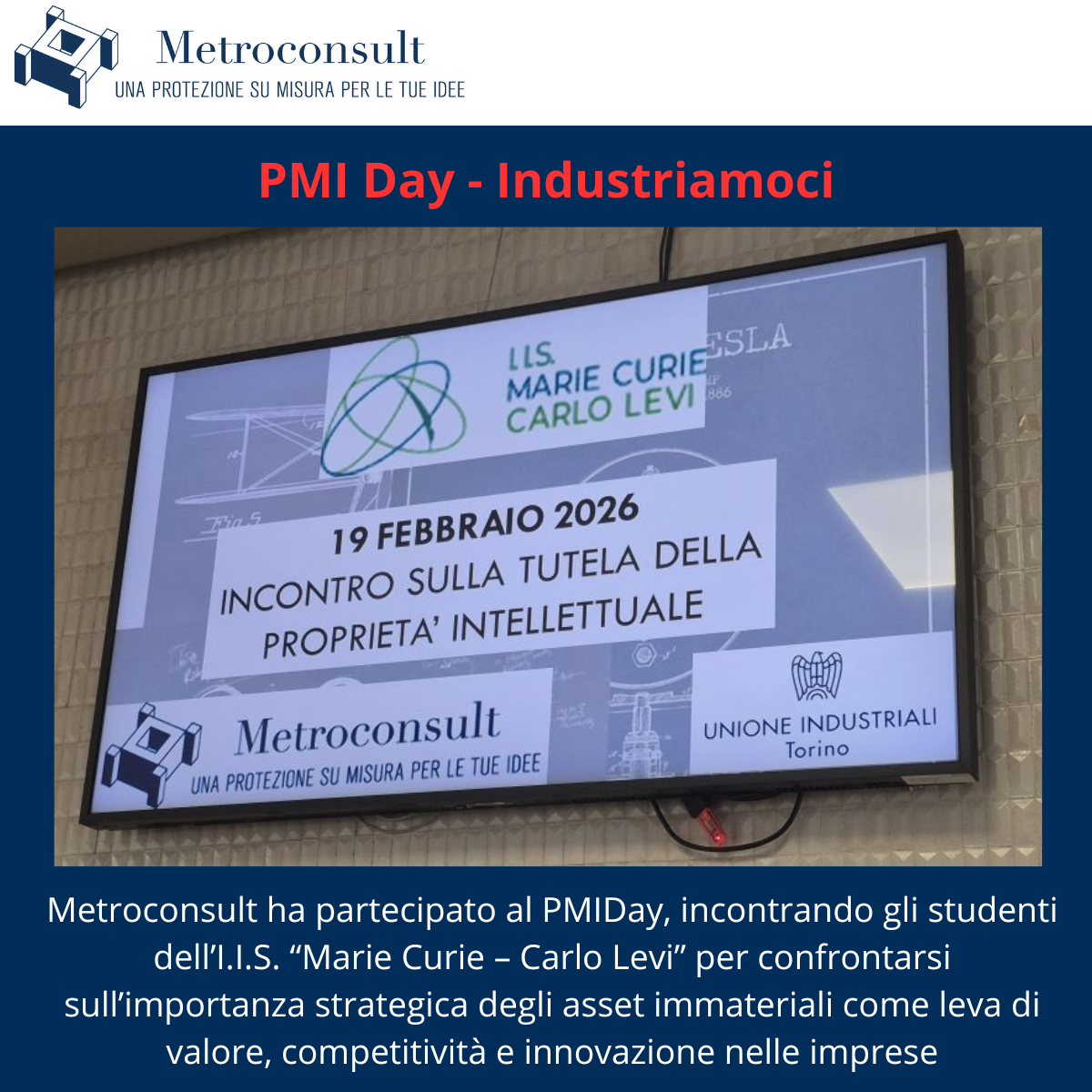 Con oltre 30 anni di esperienza, un forte background industriale ed un team composto da qualificati professionisti iscritti all’Albo italiano ed europeo dei Consulenti in Proprietà Industriale, Metroconsult offre servizi per la difesa e la valorizzazione della proprietà intellettuale basati sulle specifiche necessità del cliente.